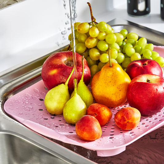 Filter Cutting Board with Colander Strainer Includes a Peeler