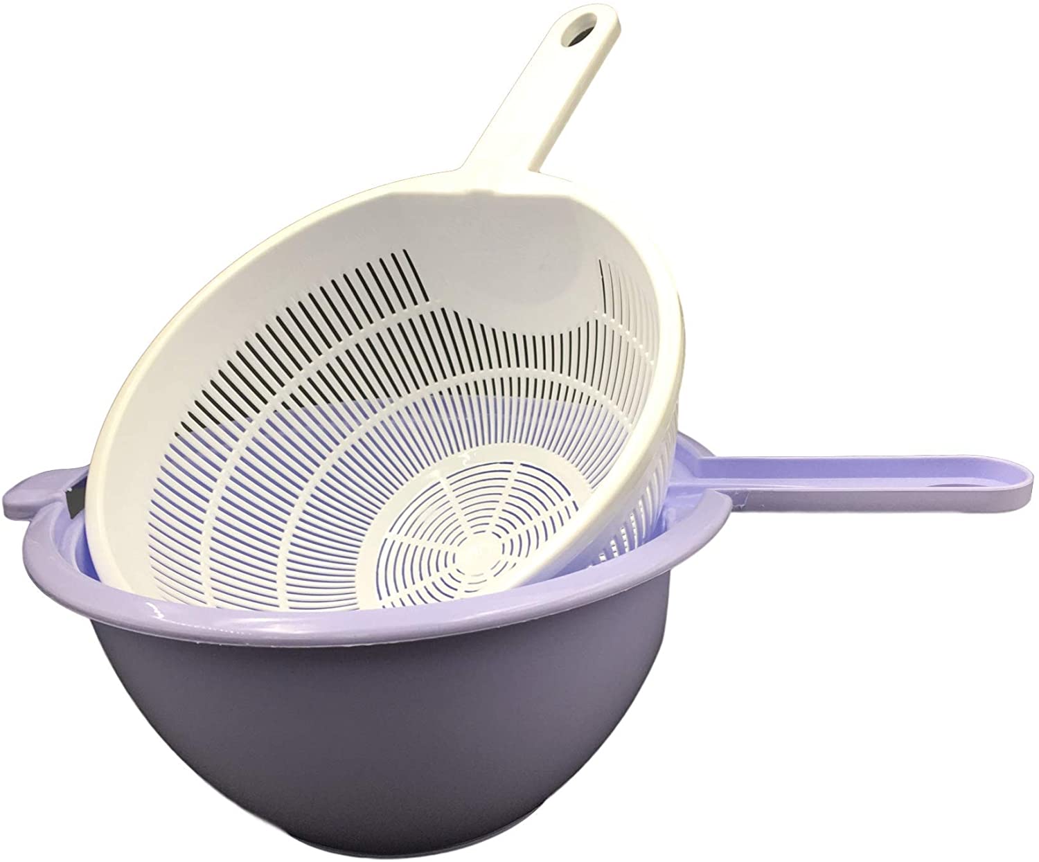 - Multi-function bowl with integrated colander. 2 in 1 Strainer Bowl.